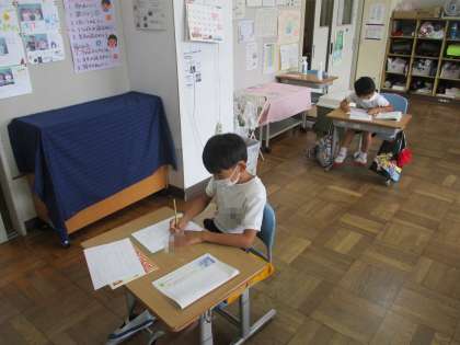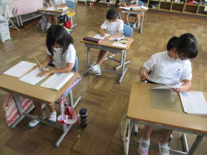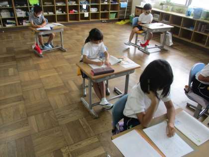 今まで学習したことを生かして、手本にそって文章を書きます。最初から最後まで思うように書くのは難しいようです。毎回、課題がでてきます。この課題をしっかりと持つということが大切ですね。