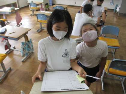 先週は、校区にあるコンビニエンスストアに行き、仕事の内容や工夫などを学習しました。今日は、みんながどんなお店を利用しているか、また、どうしてその店を利用しているのかを学習するため、聞き取り調査です。