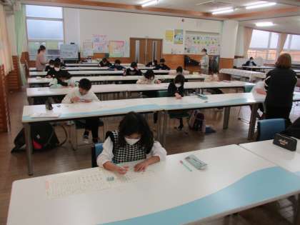PTA活動企画部の皆様の御協力で、漢字検定を実施しました。検定受検の希望者を募り、子供たちは、昼休みや家庭での学習をすすめてきました。漢検を受検しない友達も、昼休みの学習には進んで参加していた人もいました。目標にチャレンジする姿は素晴らしいです。PTA活動企画部の皆様、ありがとうございました。