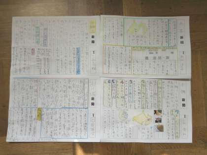 新聞づくりが進んでいます。静岡県のどんなことについて調べたのかな。