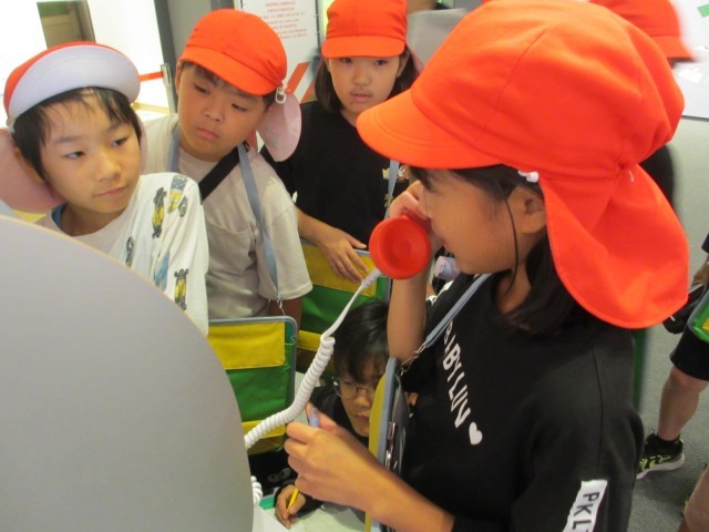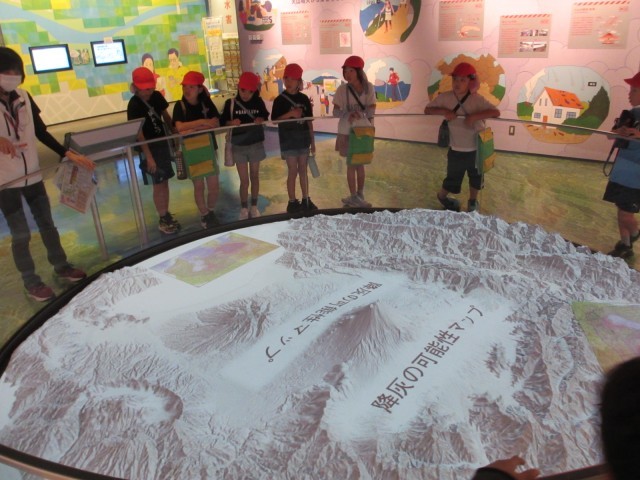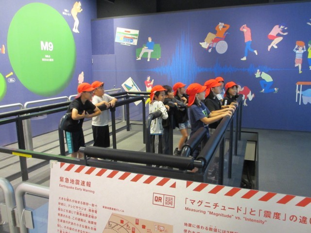 地震防災センターでは、起震体験をして、震度6弱の揺れを体験しました。その後、富士山噴火についての学習もしました。