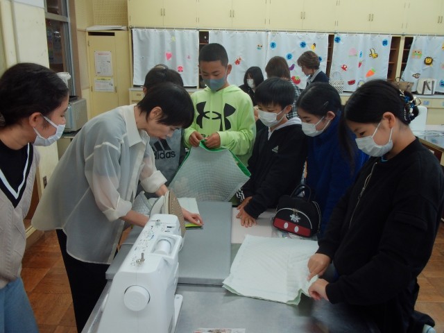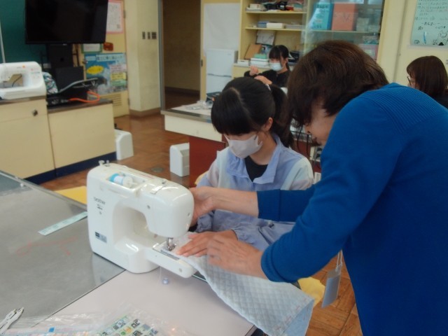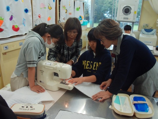いよいよミシンを使ったナップザックの製作が始まりました。サポーターの方々の支援を受けながら丁寧に作業を進めています。