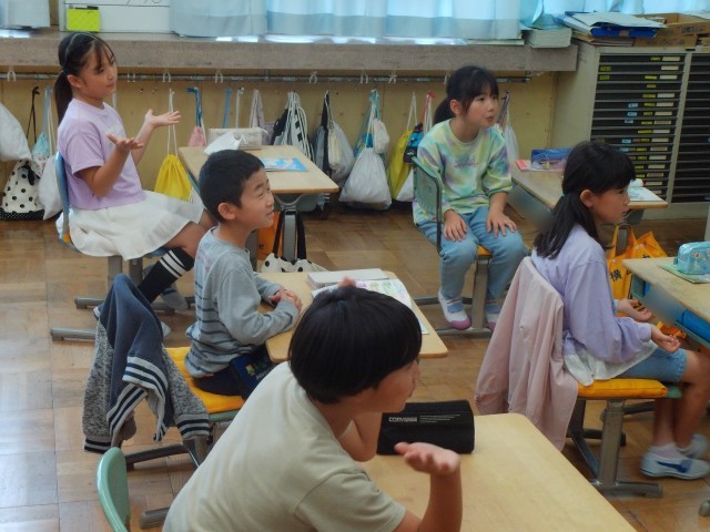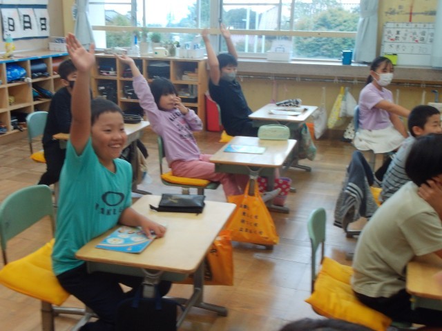 今日はハロウィンにちなんだ動画を使って英語に親しみました。いつものように楽しそうな表情とジェスチャーで、いきいきと学んでいました。