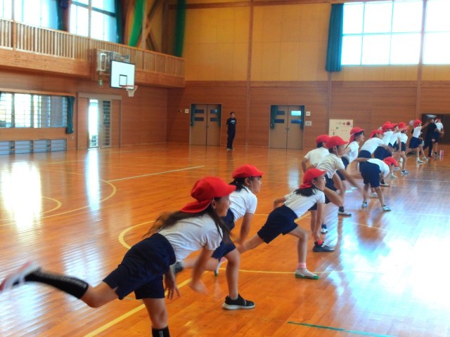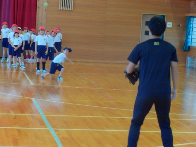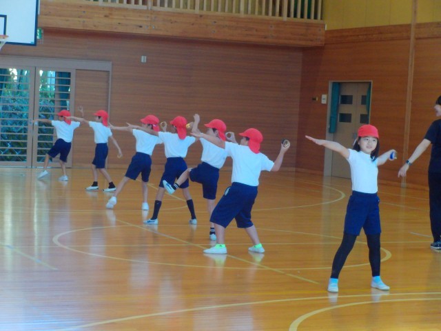 静岡県内の実業団チーム、靜甲ソフトボール部の選手の皆さんによる「投げ方教室」が本校で開催され、3年生から6年生が参加をしました。ペットボトルやバドミントンのシャトルを使って投げ方のポイントを確認し、最後は実際にボールを投げてみました。「いーち、にー、耳の横、投げる!」の掛け声にあわせて練習する子供たちの表情はとてもいきいきとしており、得意な子もそうでない子もボール投げを楽しんでいる様子が伝わってきました。靜甲ソフトボール部の皆さん、本日はありがとうございました。
