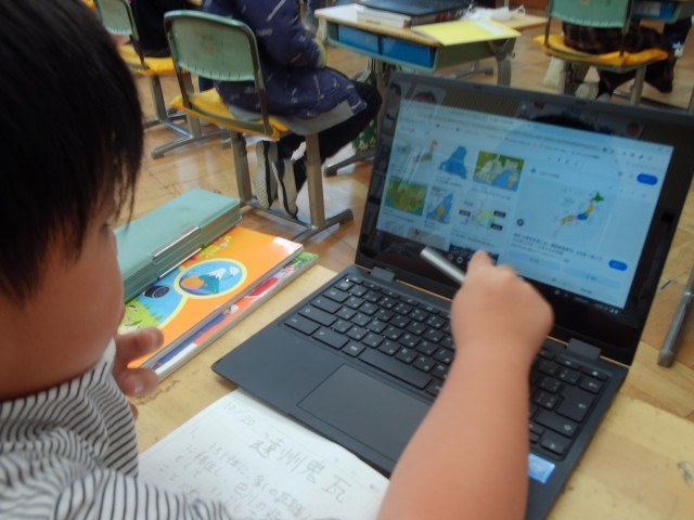 タブレットを使って静岡県の伝統的な産業について調べました。ちなみに、子供たちが調べていた以下の産業は主に静岡県のどこの市町か分かりますか?