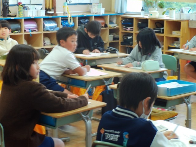 3けた×1けたの計算の仕方を考えました。「かけられる数が3けたになっても今までと同じように位ごとに分けてかけ算をし、位をそろえてたし算すれば答えが出る」との結論を導き出した3年生の思考力は大したものです。同じ=「オナジン」、そろえる=「ソロエ」のキーワードを意識しようと、「オナジン!ソロエ!」と皆で声に出していたのが楽しかったです。これなら忘れることはありませんね。