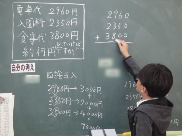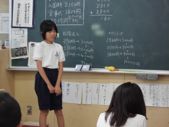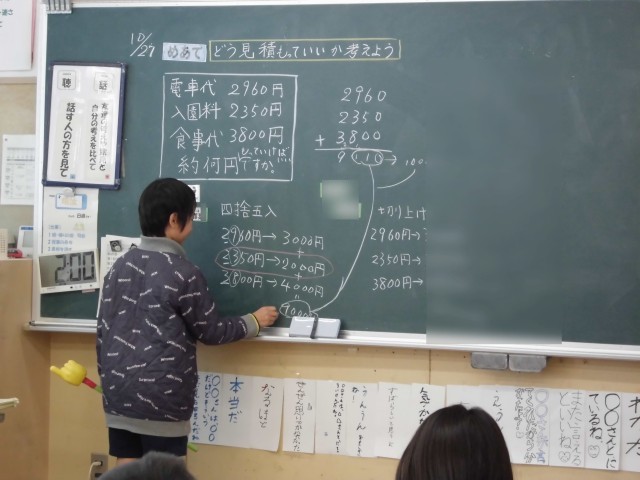 4年生の算数の学習では、見積もりを出すとき、どうしたらよいかについて話し合っていました。