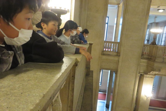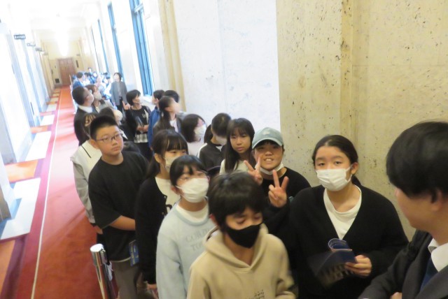 国会議事堂を見学しました。国会議員の方からお話を伺った後、いよいよ堂内を巡ります。建物の厳かな雰囲気に圧倒された様子で貴重な経験となりました。