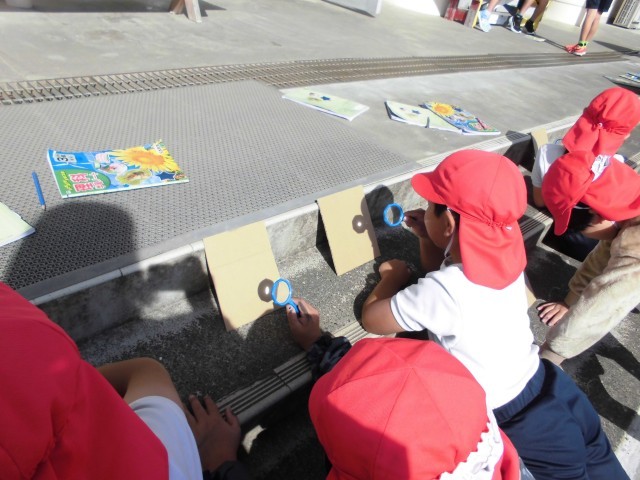 虫眼鏡によって集められる光に、興味津々に楽しく実験を進める子供たちでした。