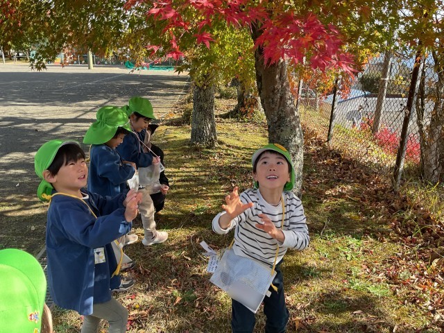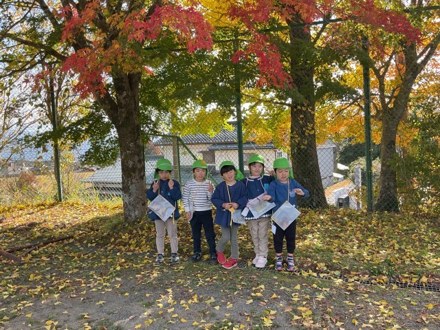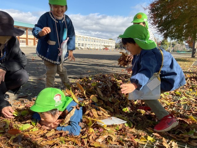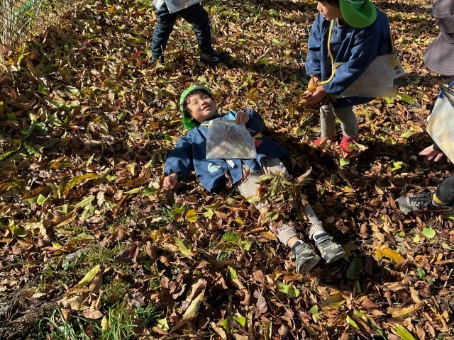 須山幼稚園のひまわり組さんが、須山小に秋の探検に行きました!赤や黄色の葉っぱを拾ったり、葉っぱのお布団で寝てみたり⁉︎して、秋を満喫しました♪小学校の校庭はとても広くて、気持ちがいいね。秋晴れの散歩を楽しみました。