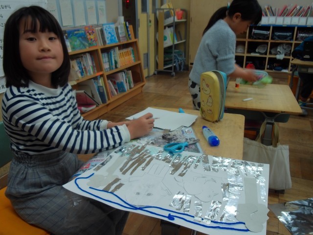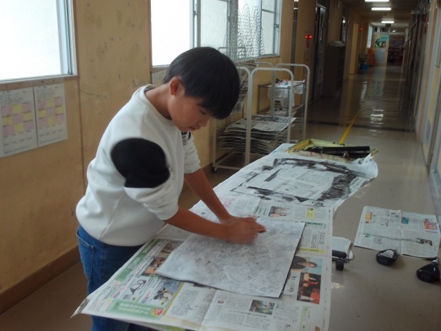 紙版画の元版が出来上がり、いよいよインクをつけて完成です。どんな作品に変身するかな? わくわくしますね。