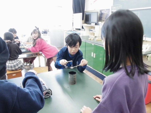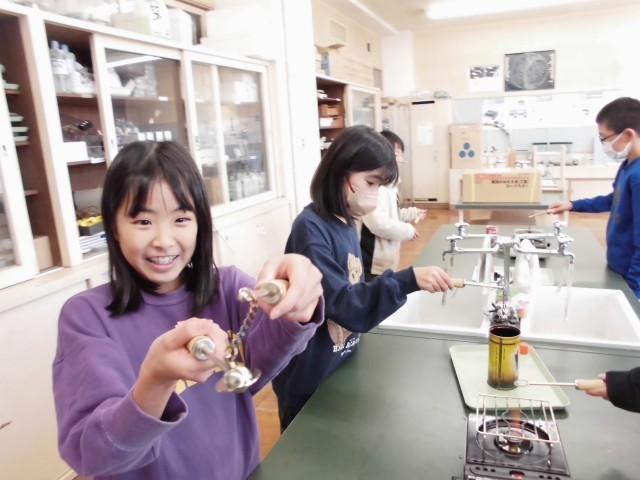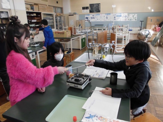 金属をあたためるとどうなるのか、子供たちは興味津々で実験に取り組みました。