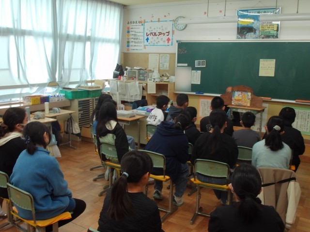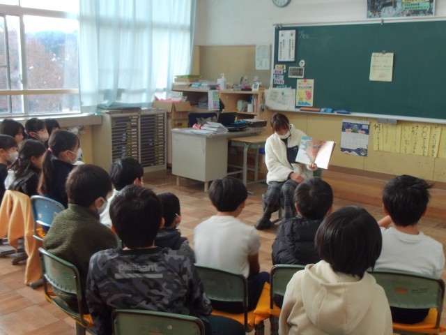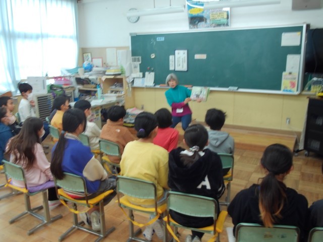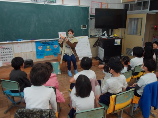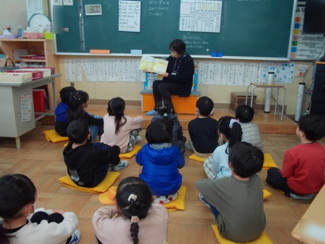 今朝の読み聞かせの様子です。みんな興味深く胸を躍らせながら聴いています。