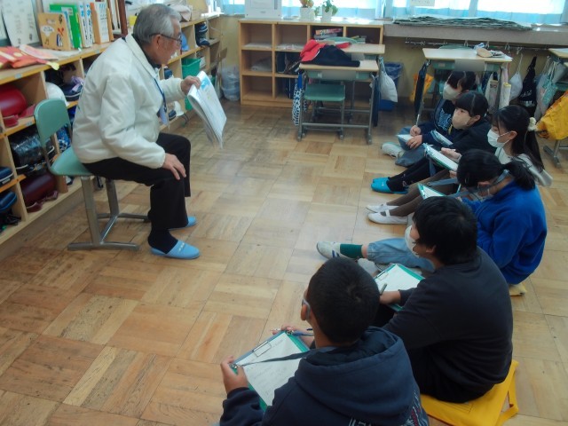 須山の魅力について調査をしている6年生。今日は3名のゲストティーチャーをお招きし、浅間神社やその他おすすめのスポットについての説明を聞いたり質問をしたりして知識を深めました。本やパソコンなどでは学べない貴重なお話をたくさんうかがえたようです。