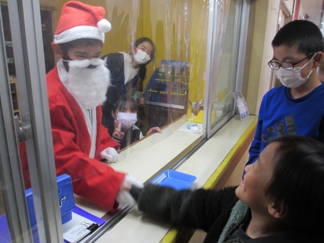 子供たちがサンターズ(友達の良いところを見つけ隊&ツリーを飾り隊)と購買でサンタと握手ができる企画がスタートしました。