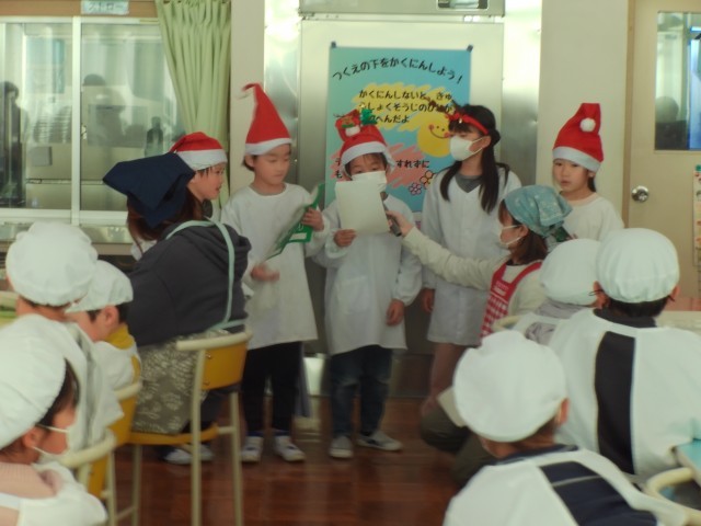 今日は1年生のサンターズたちがいいこと見つけを発表してくれました。サンタ姿が似合ってます🎅