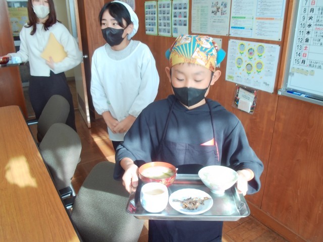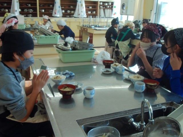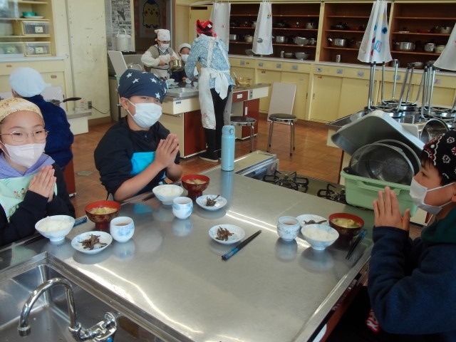 調理実習でご飯とみそ汁を作りました。残念ながら調理の様子を見ることはできませんでしたが、みそ汁の出汁ににぼしを使用するなど、丁寧に、かつ仲間と協力して調理を進めることができたそうです。味の感想は「最高!」「家よりおいしいかも!」と軒並み高評価。自分たちで作った料理は当然おいしいですよね。私も試食させてもらいましたが、お世辞抜きに感動レベルの味でした。