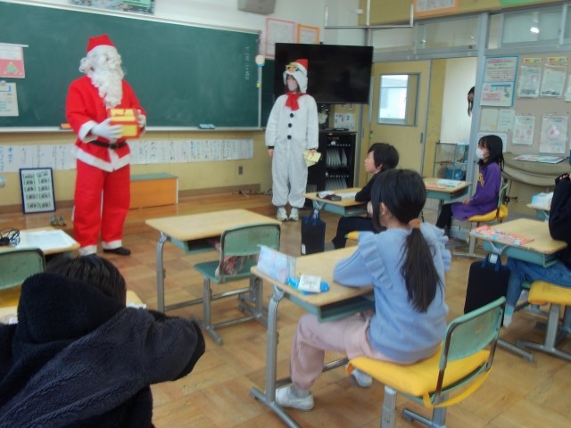 今日はクリスマス。須山小学校の各教室にもサンタクロースとスノーマンが来てくれました🎅 みんないい子にしていたからだね!