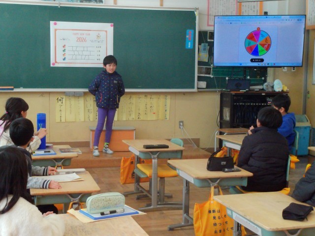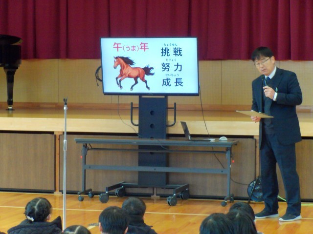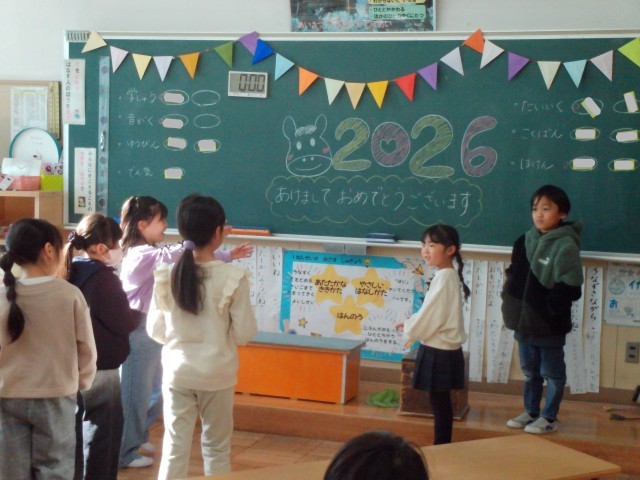 2026年がスタートしました。今年の干支は「午(うま)」。始業式の校長の話では、午年にちなんで、挑戦・努力・成長につながる一年にしようという話がありました。また、各学級では三学期の学級開きが行われました。久しぶりに会った友達や教師と笑顔であいさつを交わしたり、冬休みの思い出話に花を咲かせたりと、明るい雰囲気で学校生活をスタートできたようです。新たな気持ちを胸に、これからも須山っ子が様々な場面で自分らしさを発揮できるよう、教職員が一体となって子供たちを支えていきたいと思います。今年もよろしくお願いいたします。