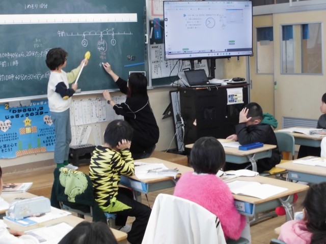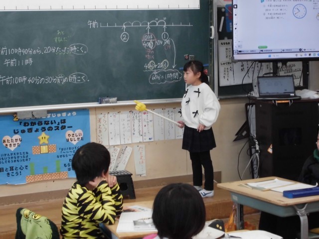 時計を見て考える子、足し算で計算をして考える子、それぞれが自分の考えやすい方法で