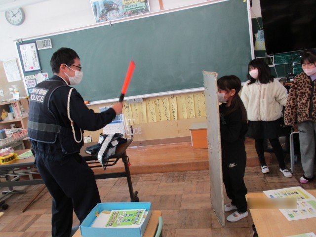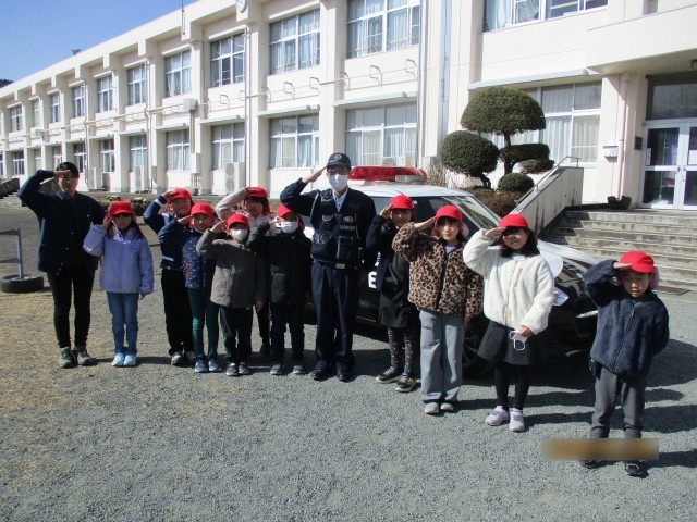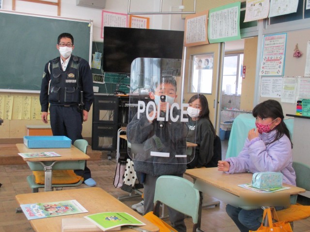 須山駐在所長さんにお越しいただき、「事故や事件からくらしをまもる」で学習する警察のいろいろなお話を伺いました。警察官の仕事の紹介をはじめ、警察官が使う道具を実際に見て触ったり、ミニパトカーに乗せていただいたりと、大変貴重な経験をさせていただきました。とっても優しそうな駐在所長さんで安心しましたね。これをきっかけに、困ったことがあった時にはいつでも駐在所に相談するようにしましょう。これからも須山の安全をよろしくお願いします。