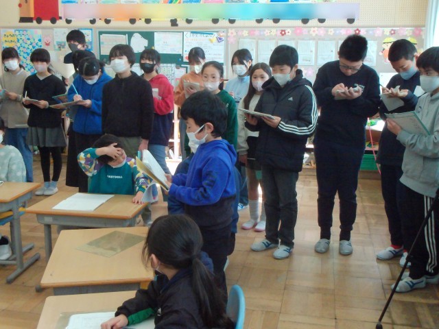 先週は本校に大勢の来校者が訪れ各学級を参観いただきました。その日に1年生は不在であったため、代わりに今日、その時やる予定だった授業を公開しました。本校職員の他に5.6年生まで参観に来てくれて教室内はすごい人だかりに。しかし、1年生は立派です。大勢人がいようが気にすることなく、しっかりとノートに自分の考えを書いたり発表したりしていました。たいした度胸です!!