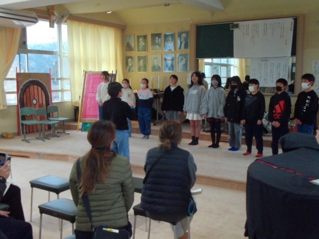 5年音楽など:保護者の方を前に、劇や歌唱、鼓笛を披露しました。