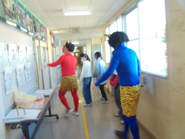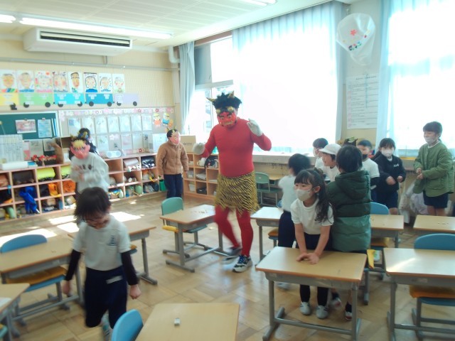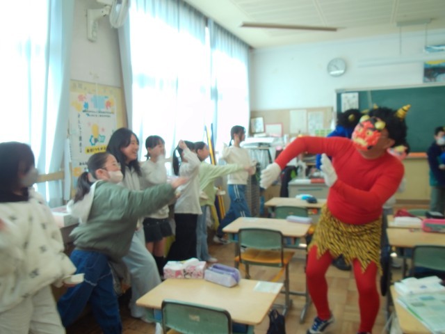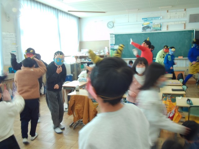 鬼が来た!(節分) 公開日 2026/02/03 更新日 2026/02/03 学校日記 今年も彼らはやってきました。しかも、子分を大勢引き連れて・・・。それぞれの教室に侵入してきた鬼たちを、子供たちは福豆を使って「鬼は外!」と投げつけ、戦いました。恐怖を感じながらも果敢に立ち向かった須山っ子たちは実にたくましかったです。おかげで鬼は須山小から飛び出してしまいました。みんな、学校を救ってくれてありがとう。(鬼の子分を演じてくれた子供たちもありがとう👹) +1 いいね(0)
