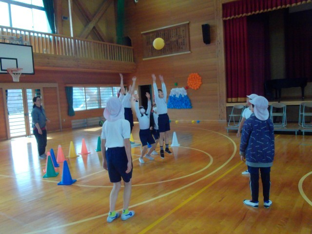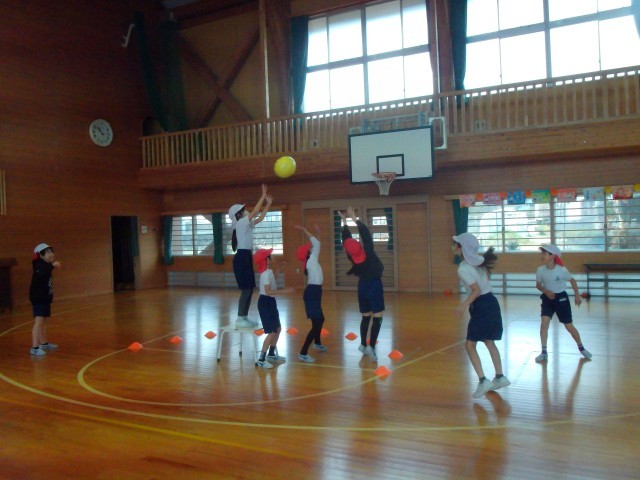 ポートボールの授業です。今日は攻撃と守備に分かれてシュートの練習をしました。得点が決まると「やった!!」「きゃー!!」自然と大きな声が出てしまいます。ゲームの醍醐味ですね。みんないきいきと参加しています。
