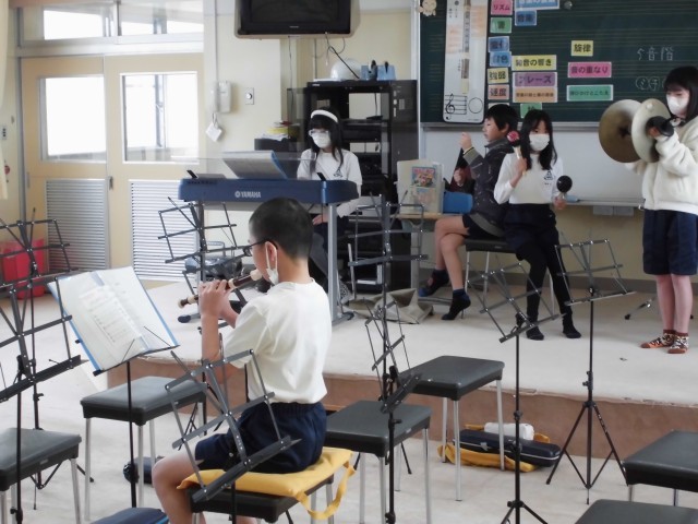 4年生の音楽の学習では、『茶色いこびん』の合奏をしていました。