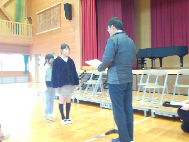 年末から3学期の間に届いたコンクールの結果紹介および表彰を行いました。11項目、のべ38名に賞状が手渡されました。おめでとうございます。