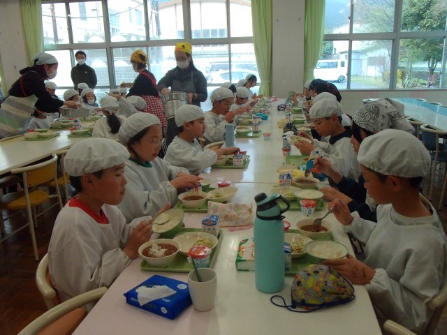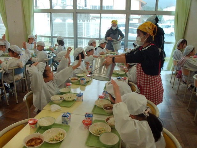 子供たちが待ちに待った給食がいよいよ今日から始まりました。初日のメニューはみんなの大好きなハヤシライスとサラダです。ハヤシライスのおいしそうな香りに刺激され、たくさんの子がおかわりをしていました。今年もたくさん食べて、大きく成長してください🍛