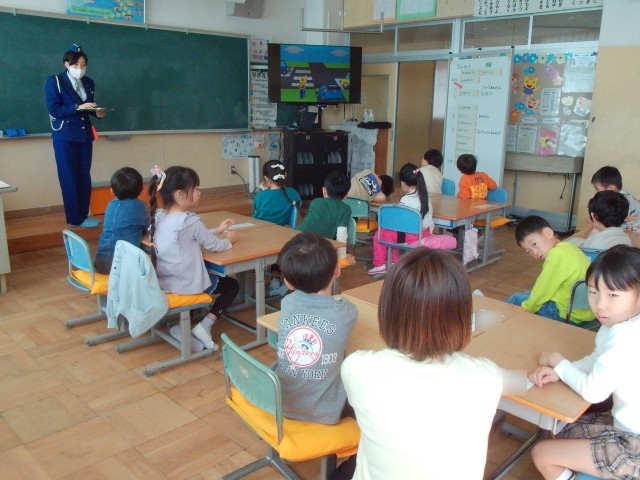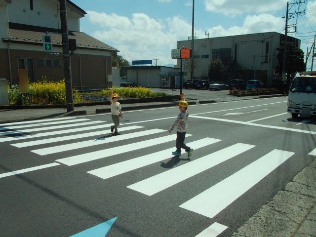 交通指導員の方から安全な歩き方を教えてもらった後、道路に出て歩行の練習をしました。少し緊張した様子でしたが、きちんと周りを確認しながら手を挙げて歩行することができていました(はなまる💮です)。今日学んだことを頭に入れて、これからも安全な行動を心掛けていきましょう。