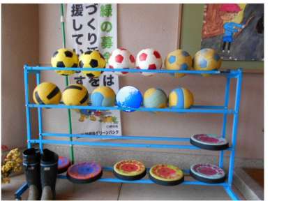 次の写真は、須山小のくつ箱にあるボール置き場です。でも、「むむっ?何かへんだなぁ?」と思いませんか?それを見つけてください。答えは、明日、発表します。