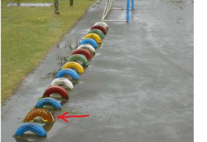 答えは、「タイヤの一つが、ドーナツになっている」でした。