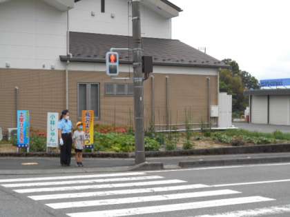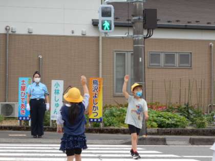 1年生の交通教室です。横断歩道の渡り方や道路の歩き方などを体験学習しました。