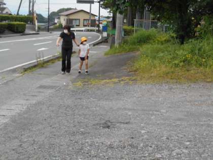 ・駐車場から車が出てくることもあります。そんな場所は、車が来ないか確認します。