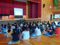 5年生も久しぶりの水泳なので、体慣らしのために、友達に足を押してもらって、伏し浮きのまま、前に進む動きを行っていました。