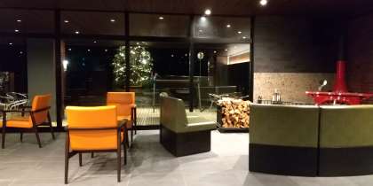 宿泊棟のロビーです。表のイルミネーションがきれいだと子どもたちは、感動していました。