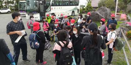 ビオの子は、先に下車して、他の子達が、学校に着きました。自然教室が無事に終わりました。