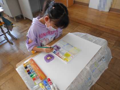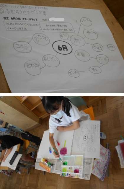 3年生の図工です。6月をイメージして絵を描こうとしています。