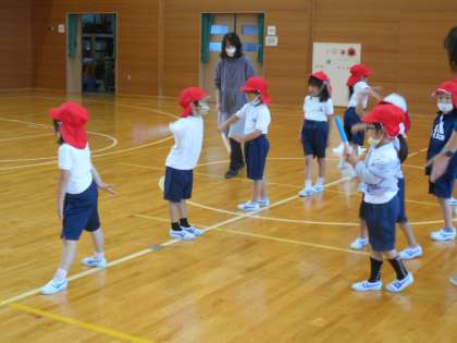 どちらの手でバトンを受け取り、受け取ったら、どちらの手でバトンを持つのかを繰り返し練習していました。