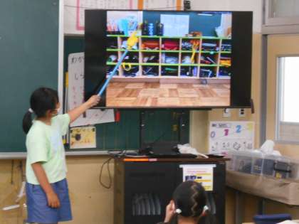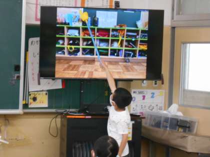 今日は、モニターに教室の写真を映しました。この中で、平行になっている場所をさがします。
