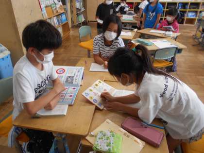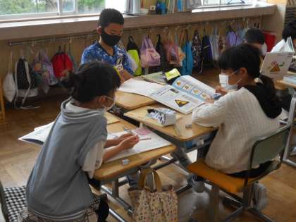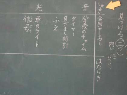 教科書に載っている合図としるしを学んだので、今度は、自分たちで合図としるしをさがすことにしました。