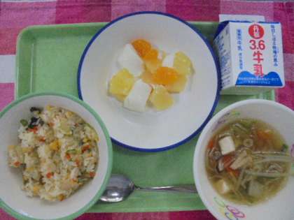チャーハンの中の炒り卵も別の釜で炒ってぽろぽろに