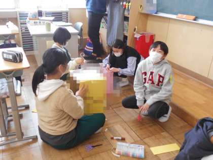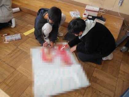 6年生も出し物の小道具作りをしていました。