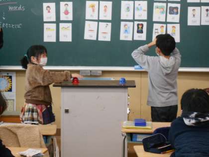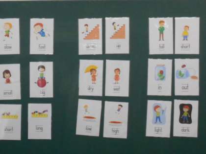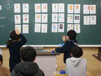 3年生の外国語活動です。今日は、反対語を英語で言います。