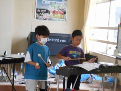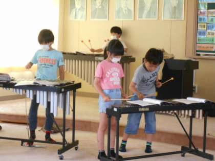 3年生…「ゆかいな木きん」の曲に合わせて木琴で演奏しています。
