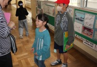 3年生の算数の授業の様子です。2.4㎗を図に表すとどの目盛りかなという先生の質問に、たくさんの手が挙がりました。