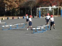 5年生の体育では、ハードル走に挑戦していました。『ハードルを越えながら、同じ距...